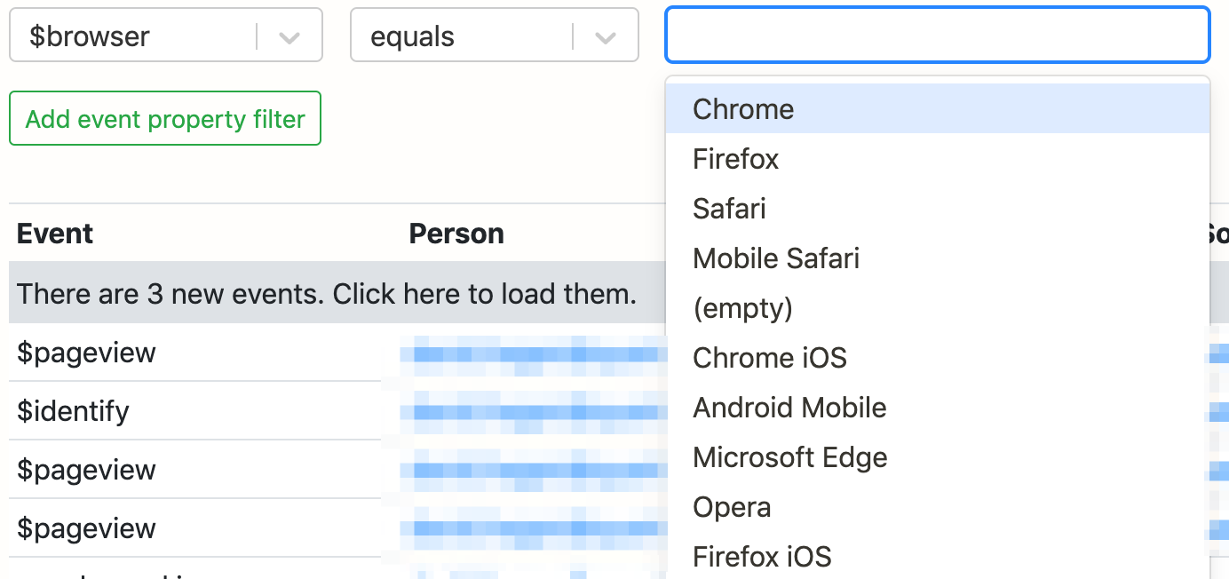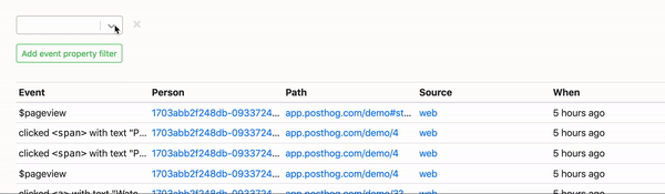 We are aiming to make events very intuitive so firstly we have changed the wording around event property filters and made it clear that you can use dropdowns in events