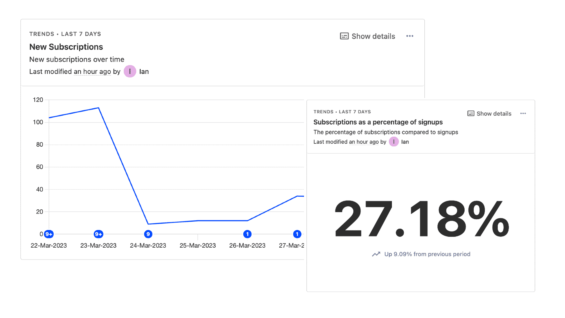 Run on subscriptions? Find out the conversion rate between sign-up, and subscription.