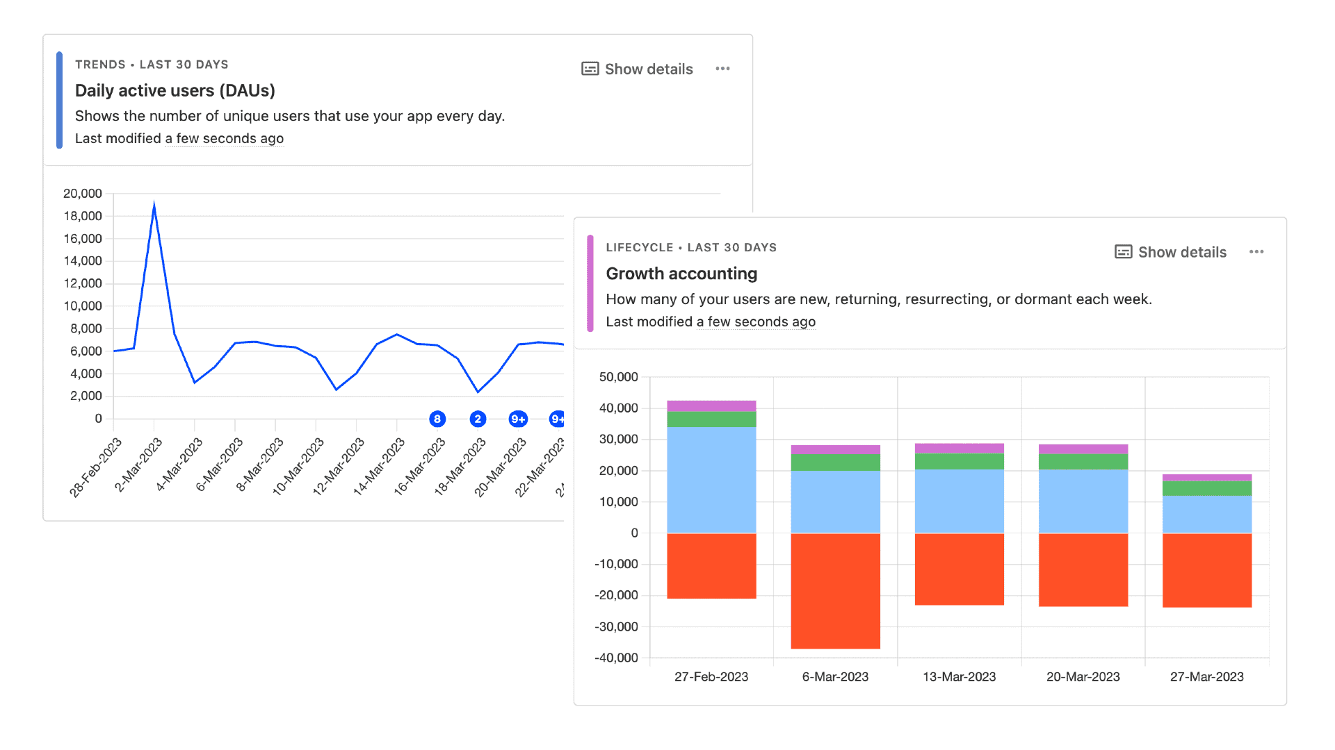 Spot churn risks and see how many new, returning and resurrecting users you have.